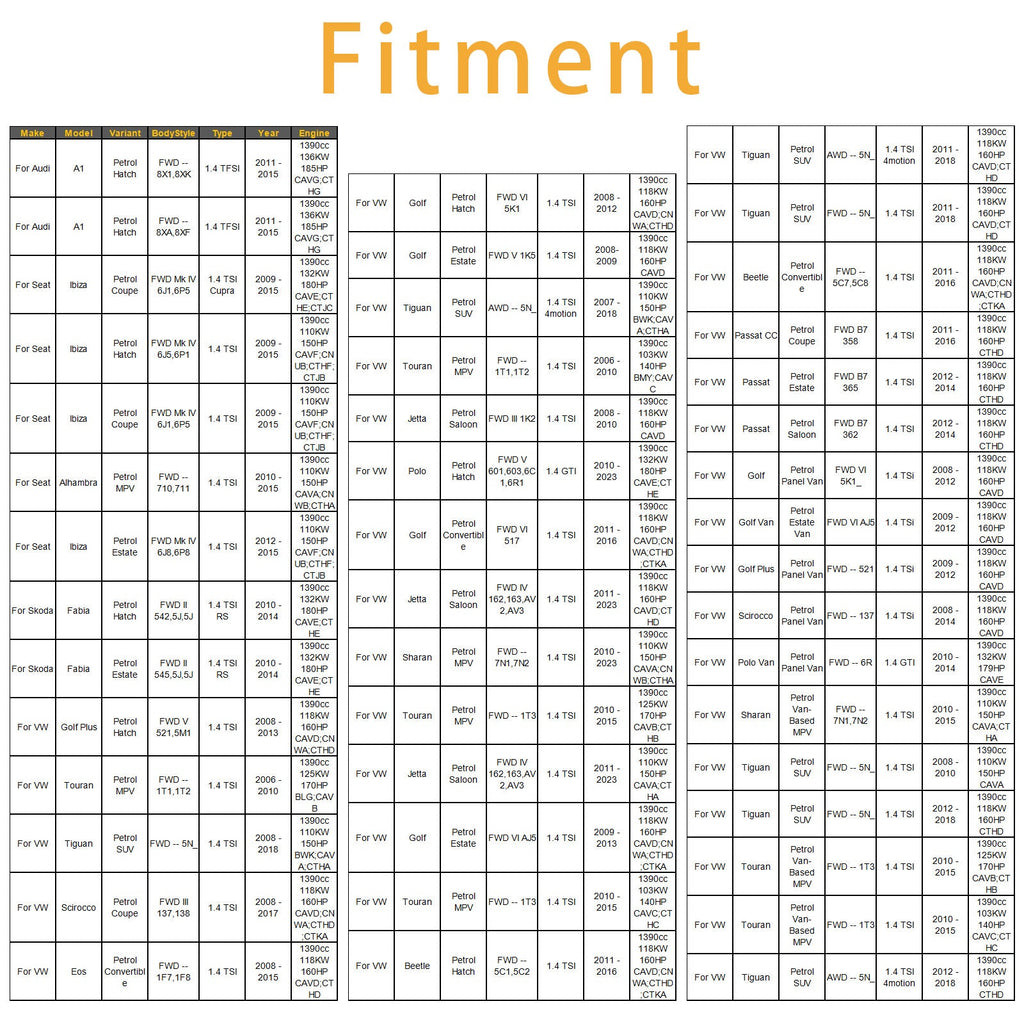 Adecuado para VW Touran MPV a base de gasolina FWD-1T3 1,4 TSI 2010 - 2015 1390cc 103KW 140HP CAVC;CTHC