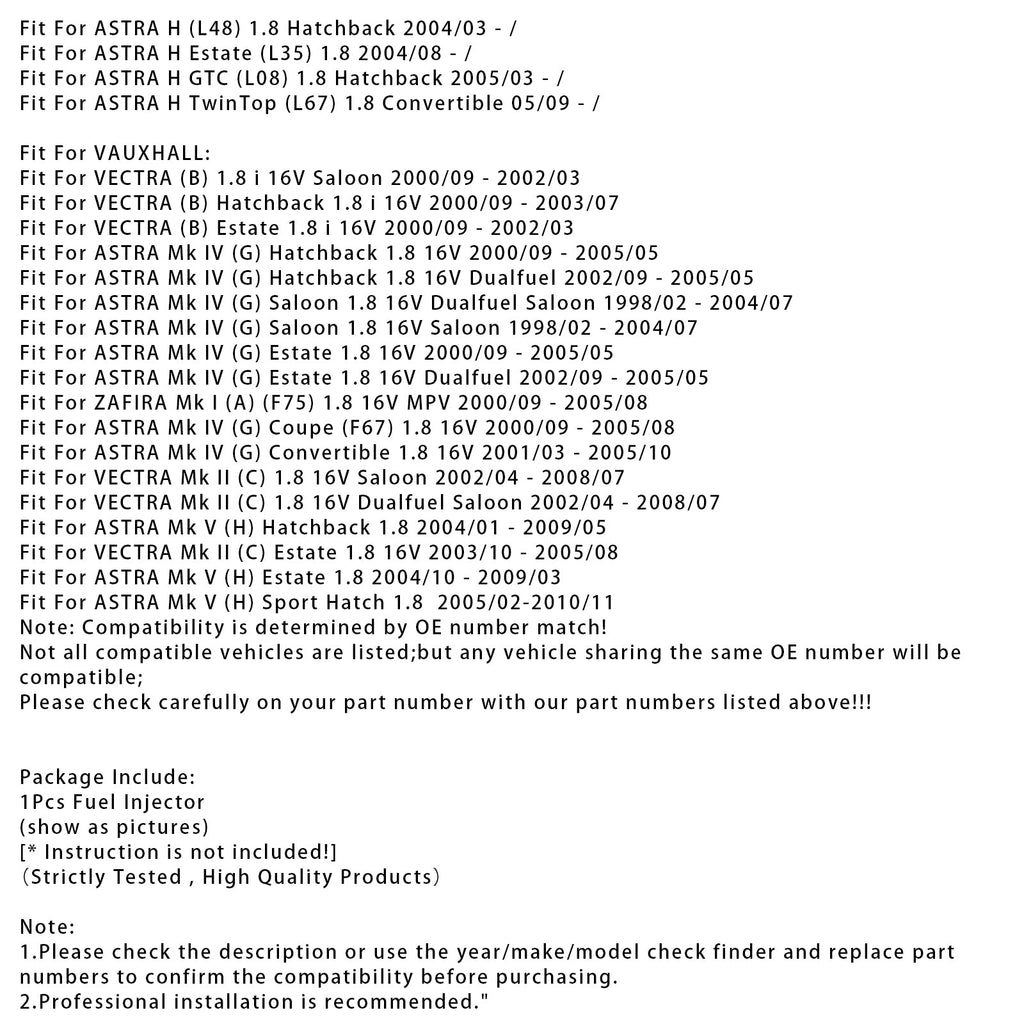 1 inyector de combustible para Vauxhall Astra Vectra Zafira 1.8L 90536149 5WK93151