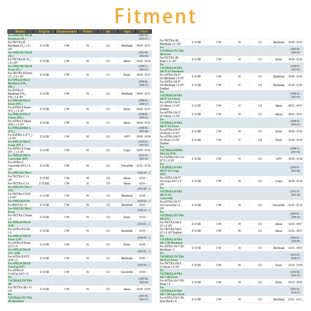 Compatible con motores Vauxhall Opel 1.8L Z18 XE/Z18 XEL