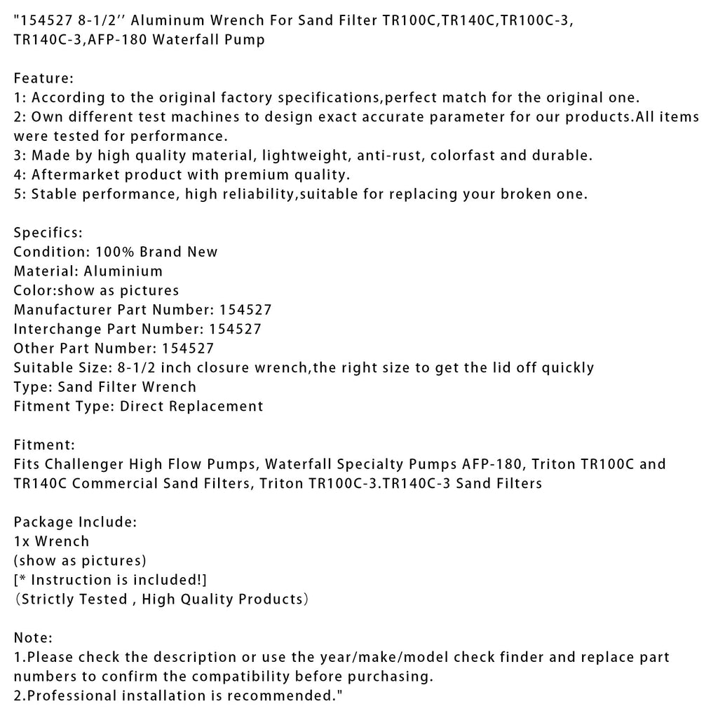 Llave de aluminio de 8-1/2'' 154527 para filtros de arena TR100C, TR140C, TR100C-3, TR140C-3 y AFP-180