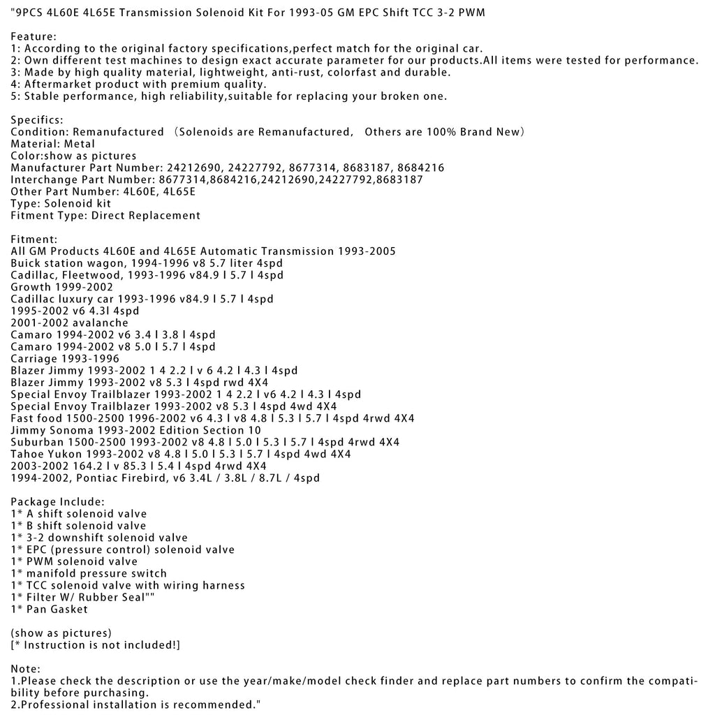 Kit de solenoide de transmisión de 9 piezas 4L60E 4L65E para GM EPC Shift TCC 3-2 PWM 1993-05