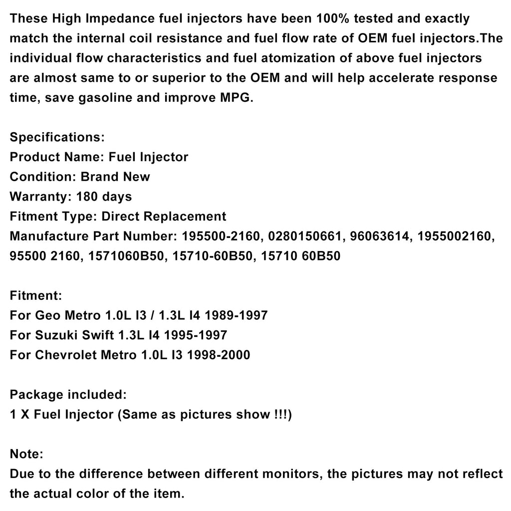 Estos inyectores de combustible de alta impedancia han sido probados al 100% y coinciden exactamente con la resistencia interna de la bobina y el flujo de combustible de los inyectores OEM. Las características de flujo y la atomización de combustible de estos inyectores son casi idénticas o mejores que las de los OEM, lo que ayudará a reducir el tiempo de respuesta, ahorrar gasolina y mejorar el consumo de combustible.