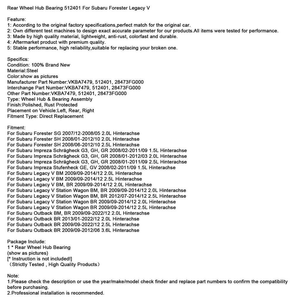 Cojinete de cubo de rueda trasera 512401 para Subaru Forester Legacy V