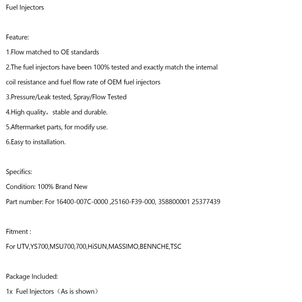 Para UTV, YS700, MSU700, 700, HiSUN, MASSIMO, BENNCHE, TSC