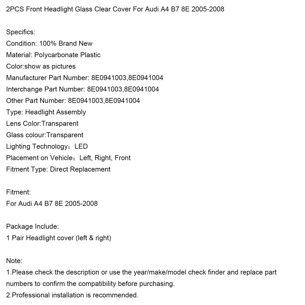 Juego de 2 cubiertas transparentes para faros delanteros Audi A4 B7 8E 2005-2008