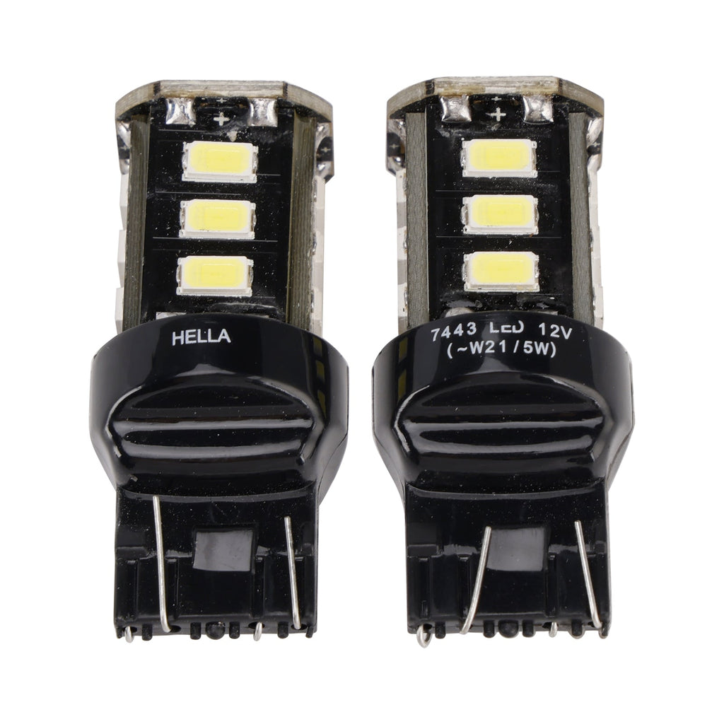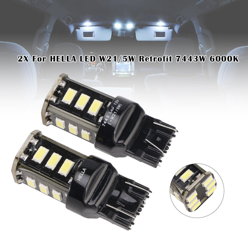2X Para LED HELLA W21/5W Retrofit 7443W Cuña 12V 3W W3x16q 6000K