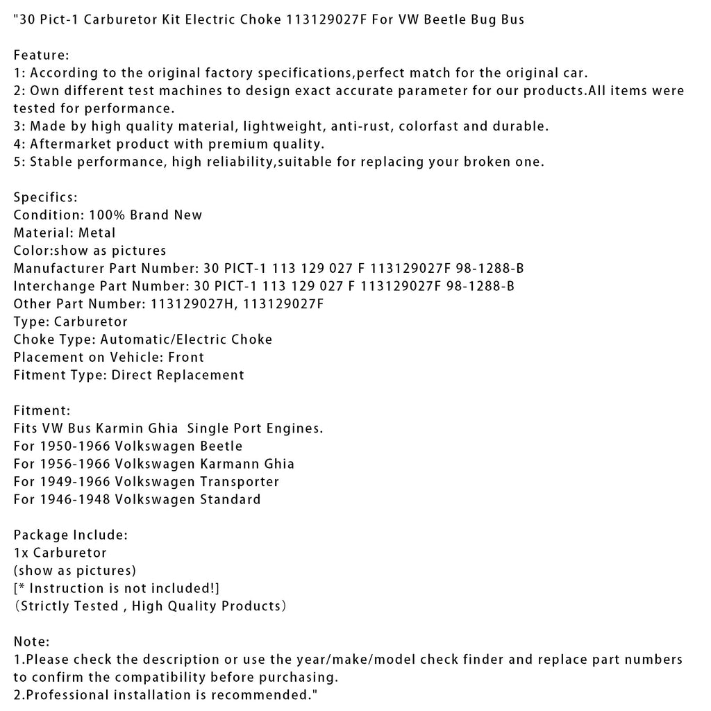Número de pieza de intercambio : 30 PICT-1 113 129 027 F 113129027F 98-1288-B