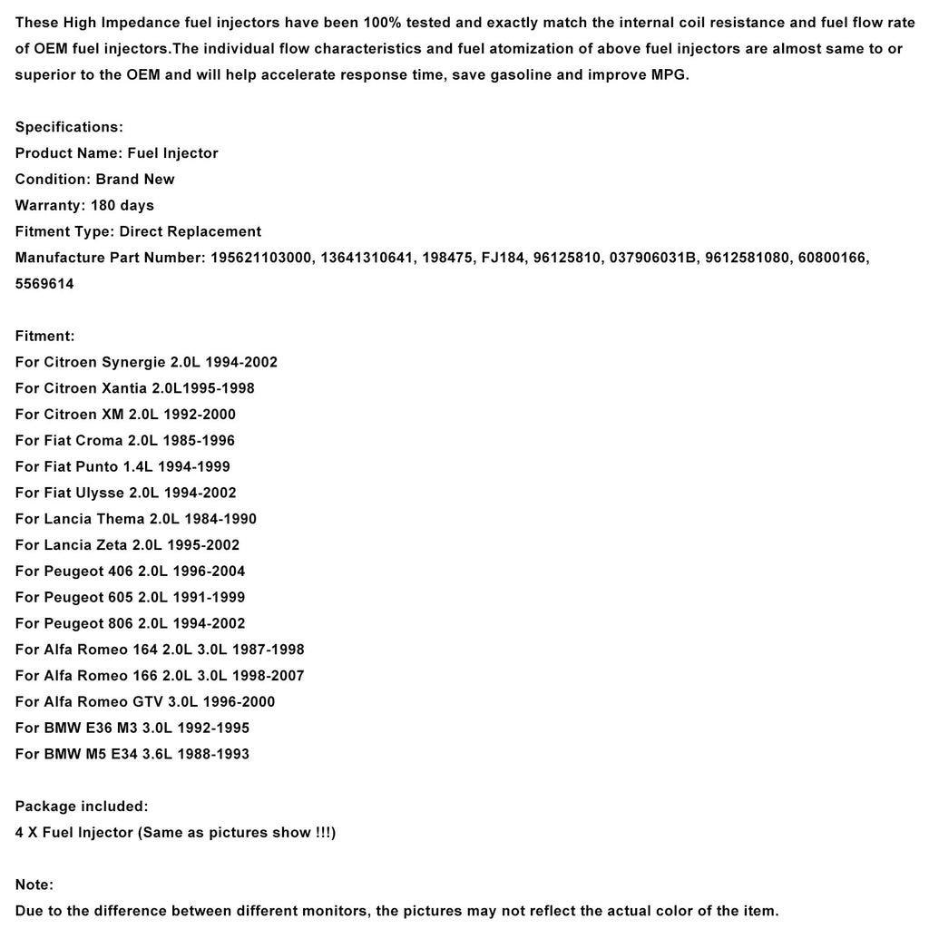 Estos inyectores de combustible de alta impedancia han sido probados al 100% y coinciden exactamente con la resistencia interna de la bobina y el flujo de combustible de los inyectores OEM. Las características de flujo y la atomización de combustible de estos inyectores son casi idénticas o mejores que las de los OEM, lo que ayudará a reducir el tiempo de respuesta, ahorrar gasolina y mejorar el consumo de combustible.