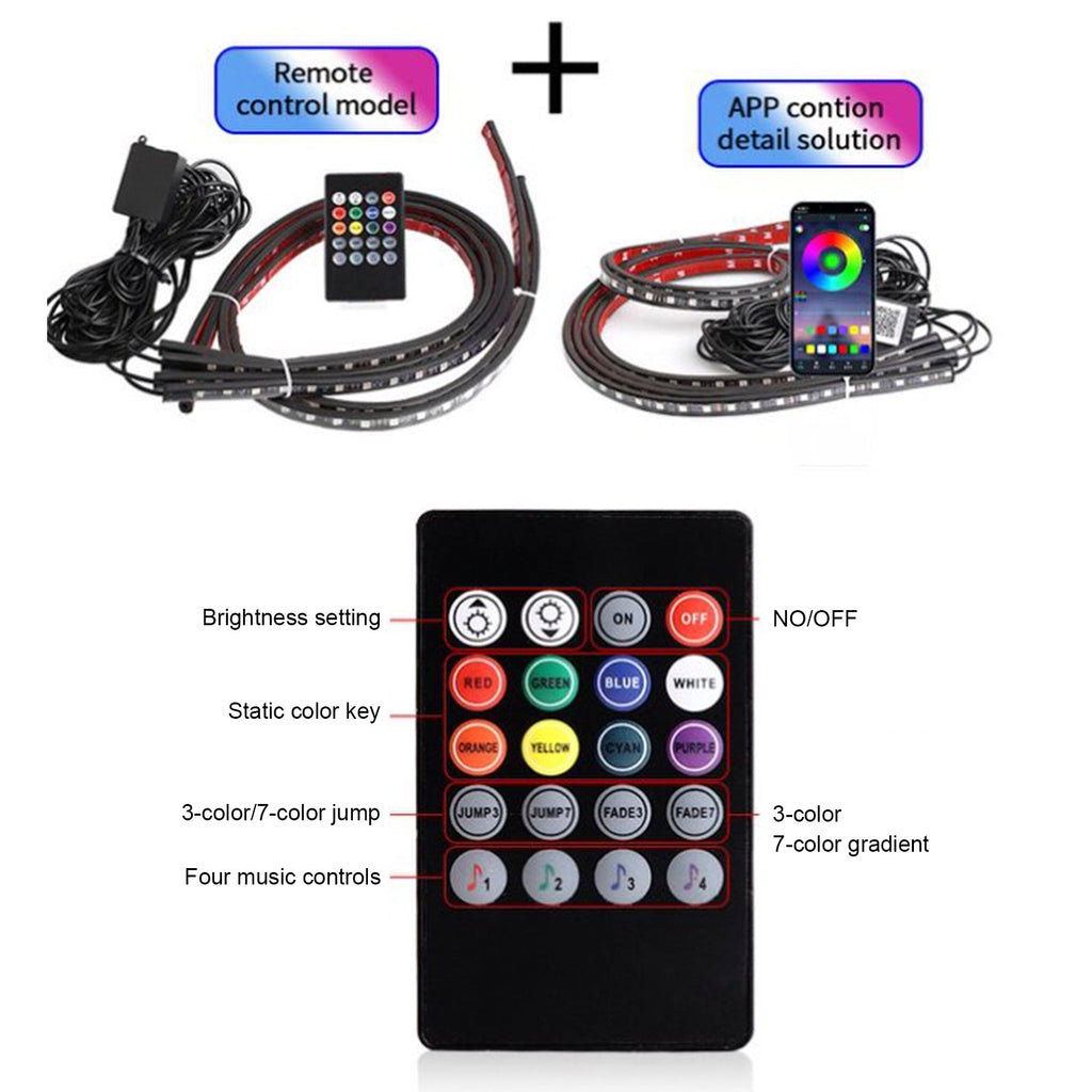 Juego de 4 luces LED para chasis, con aplicación Fantasy Ambient Light y control remoto, 60 cm x 2 + 90 cm x 2