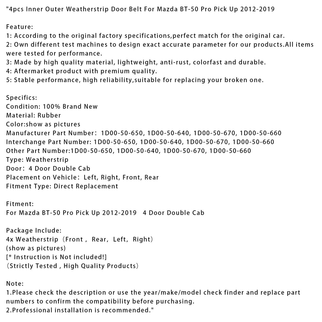 4 sellos de correa de puerta interior y exterior para Mazda BT-50 Pro Pick-Up (2012-2019)