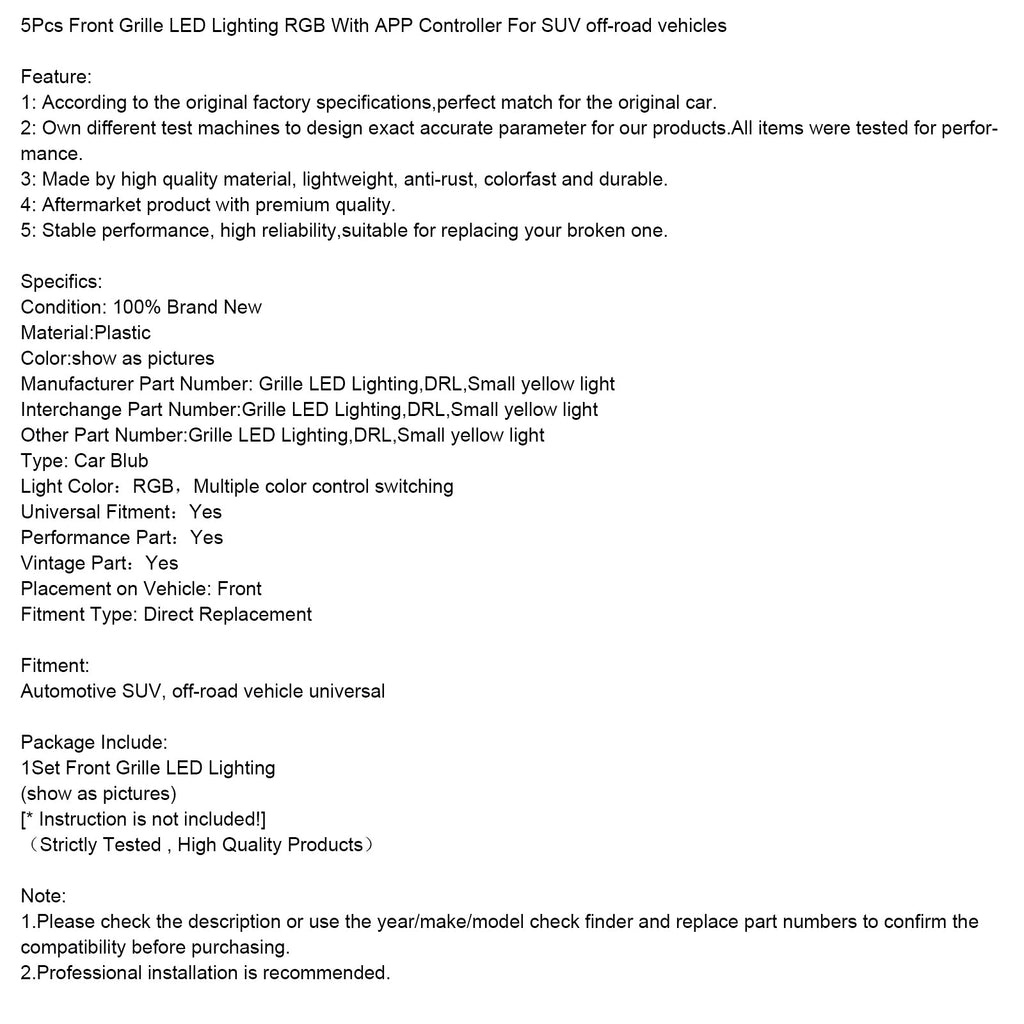 5 luces LED RGB para parrilla delantera con controlador de aplicación para vehículos todoterreno y SUV