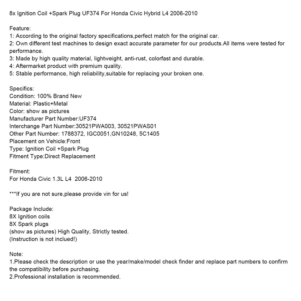 **Juego de 8 bobinas de encendido + bujías UF374 para Honda Civic Hybrid L4 2006-2010**