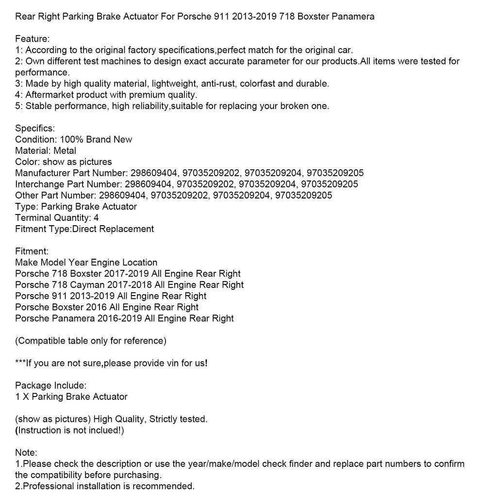 Actuador de freno de estacionamiento trasero derecho para Porsche 911 2013-2019 718 Boxster Panamera