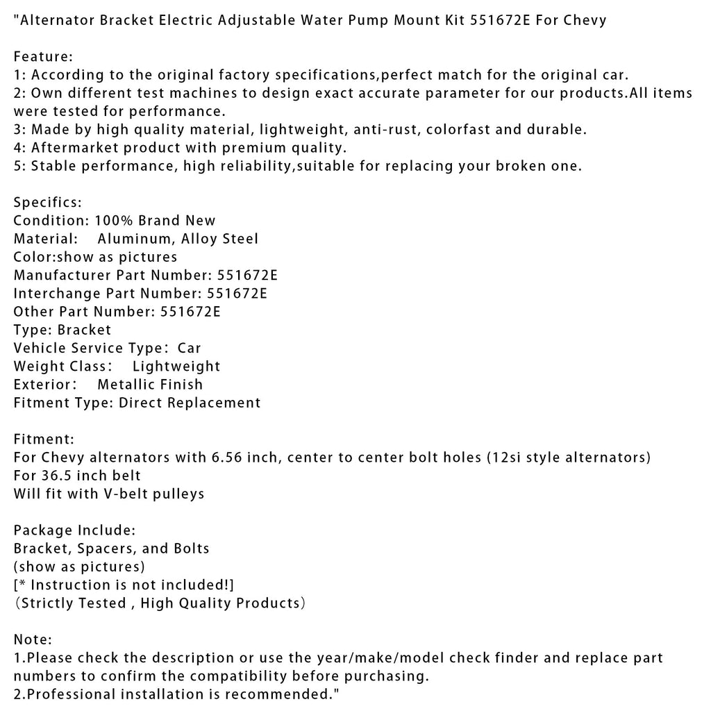 Kit de montaje de bomba de agua eléctrica ajustable para soporte de alternador 551672E para Chevy