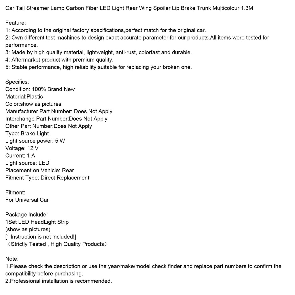 Luz trasera LED de fibra de carbono para coche, alerón trasero, borde de freno, borde de maletero, multicolor, 1,3 m