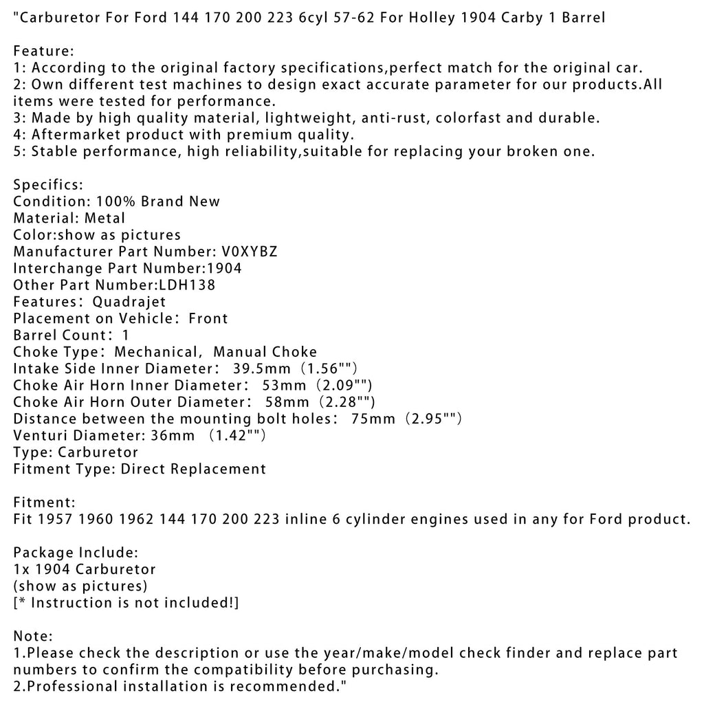 Carburador para Ford 144 170 200 223 6cyl 57-62 para Holley 1904 Carby 1 barril