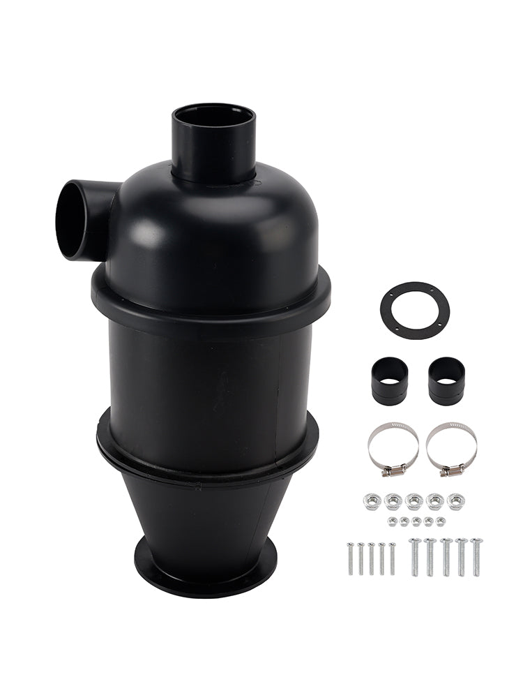 【Función】: El ciclón se instala en el balde y se utiliza como "filtro intermedio" de la aspiradora para recoger una gran cantidad de materiales de construcción: arena, yeso, aglomerado, para que la aspiradora no se sobrecaliente y mantenga su alta succión.