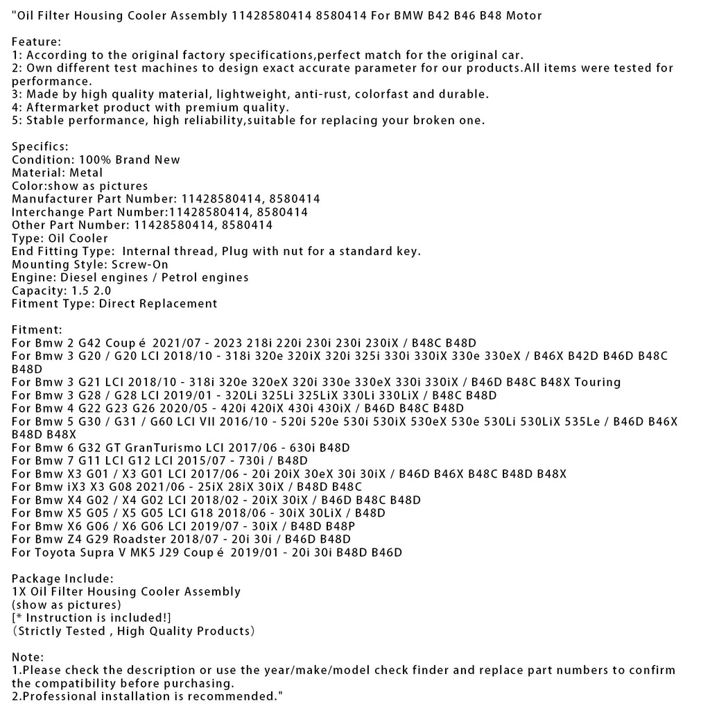 Carcasa del filtro de aceite y enfriador 11428580414 8580414 para motores BMW B42 B46 B48