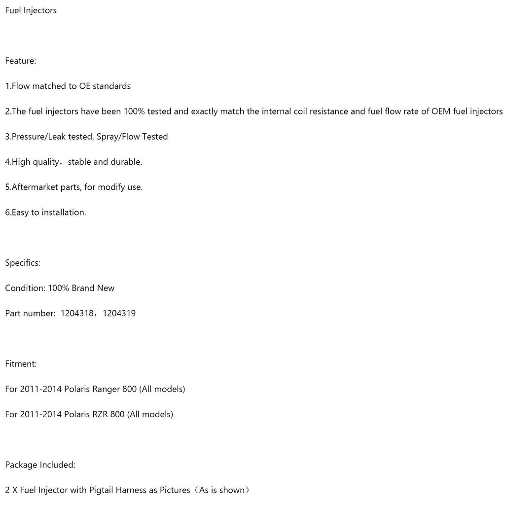 Arnés de inyectores de combustible (par) apto para Polaris RZR Ranger 800 11-14 1204318 1204319