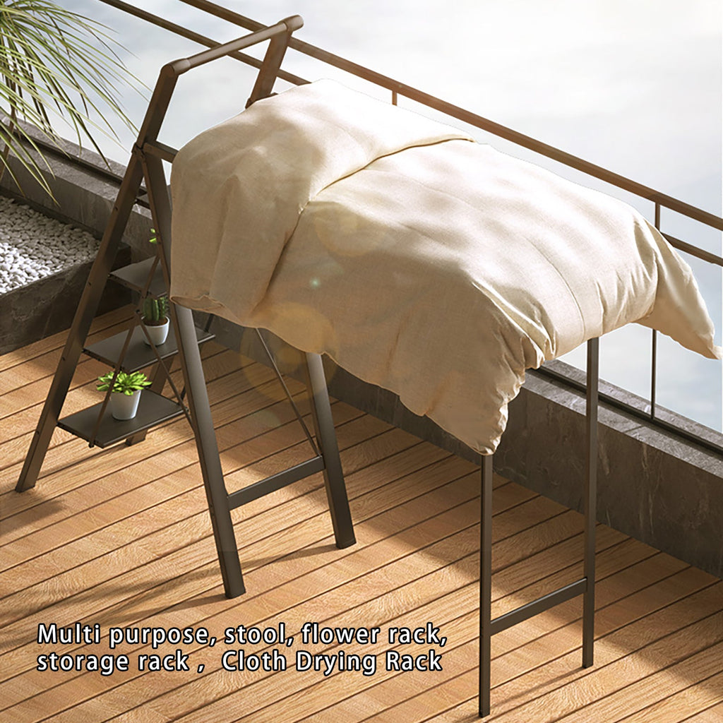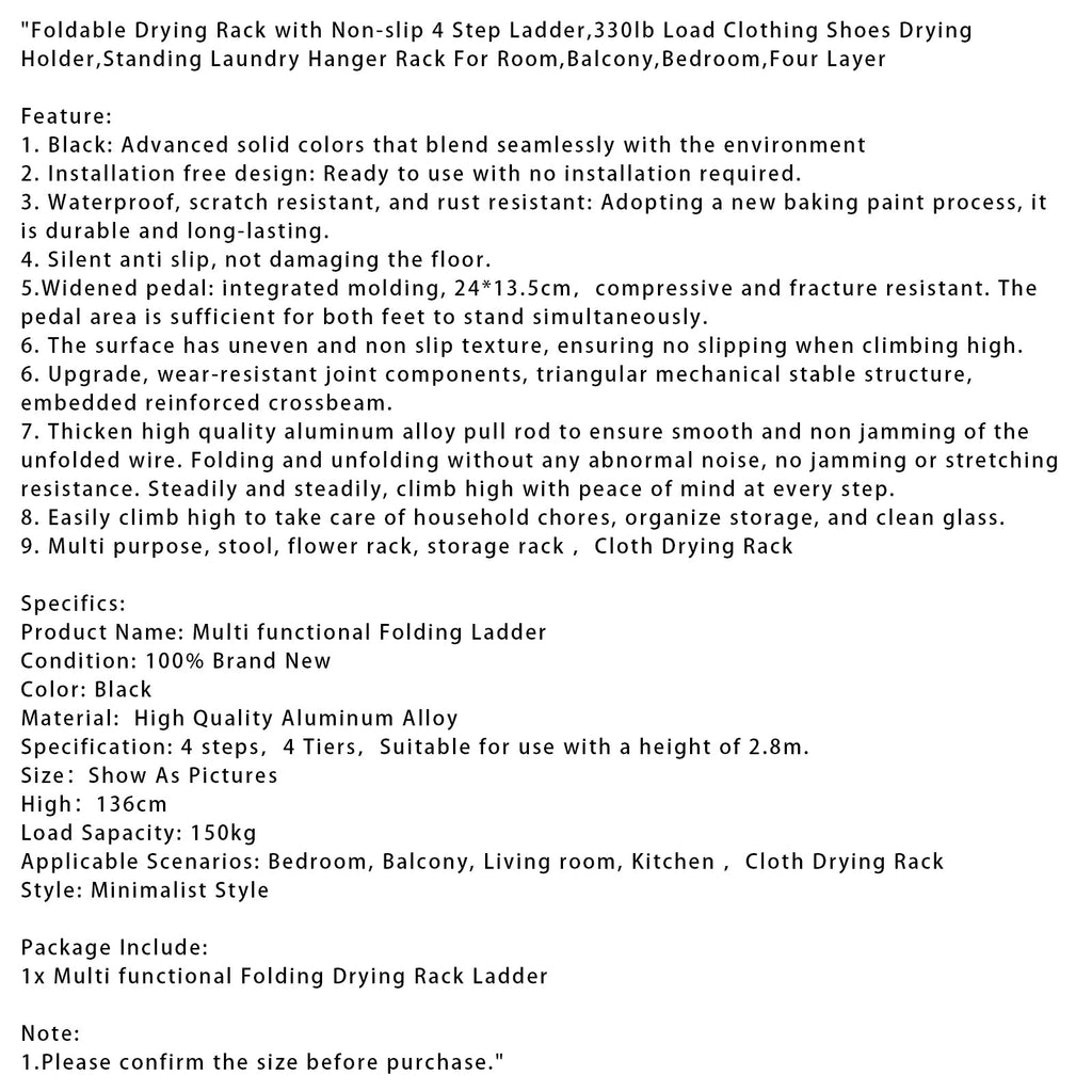 Tendedero plegable con escalera antideslizante de 4 peldaños, para ropa y zapatos, capacidad de 150 kg, para habitación, balcón y dormitorio, cuatro niveles.