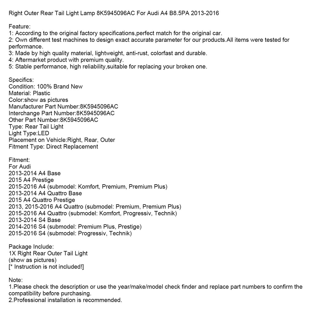Luz trasera exterior derecha para Audi A4 B8.5PA 2013-2016 8K5945096AC