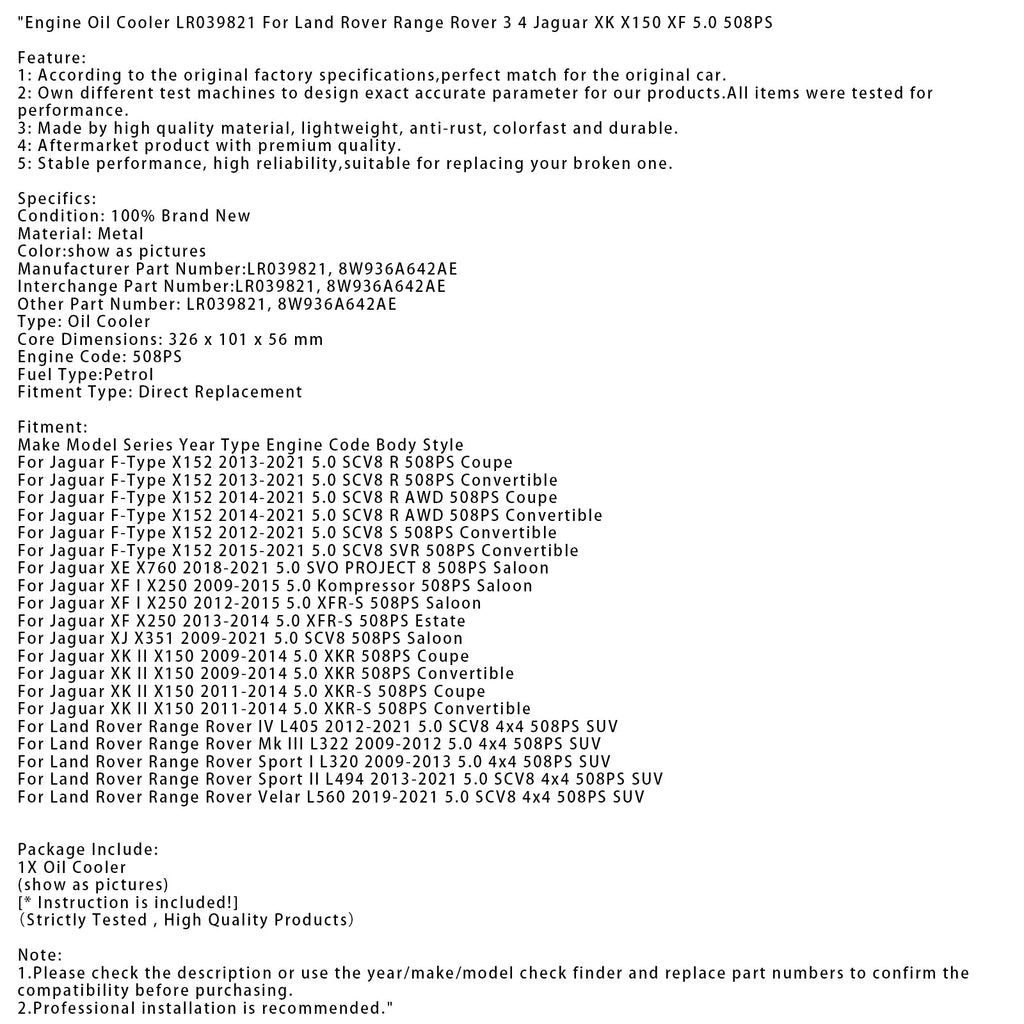 Enfriador de aceite de motor LR039821 para Land Rover Range Rover 3 4 Jaguar XK X150 XF 5.0 508 hp