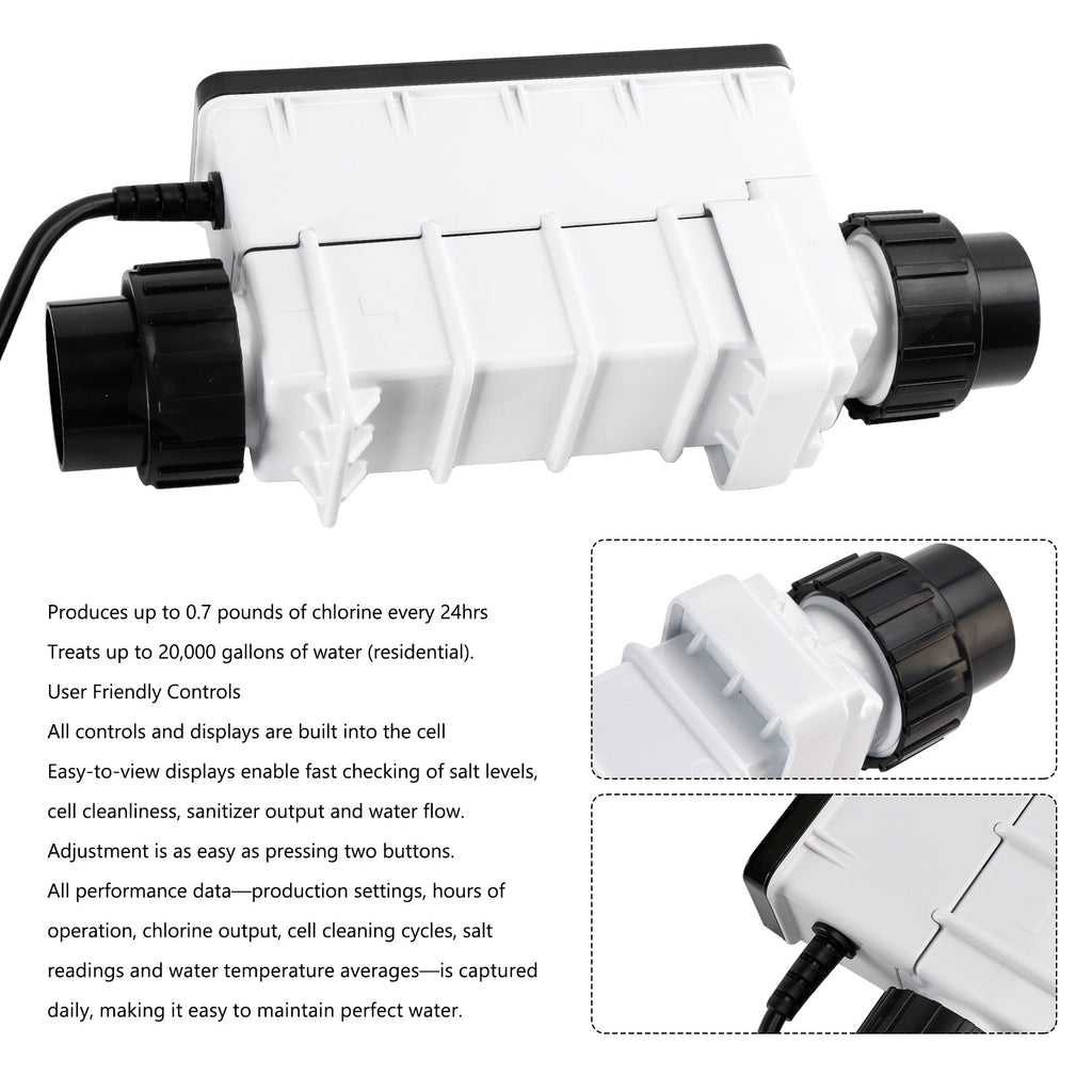 A diferencia de los aditivos de cloro convencionales, que requieren una renovación constante, la sal se recicla continuamente, día tras día, lo que reduce aún más el mantenimiento de la piscina. El generador se autolimpia gracias a una función automática de ciclo inverso que previene la acumulación de sarro y prolonga la vida útil de la celda.