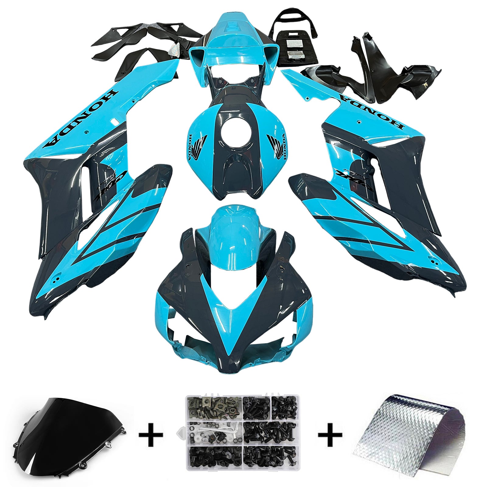 Material: plástico ABS de alta calidad, buena elasticidad y tolerancia al calor, no se agrieta fácilmente. Utilice el mismo grado de materia prima ABS del kit de carenado de carrocería OEM. Se adoptó tecnología de escudo térmico.