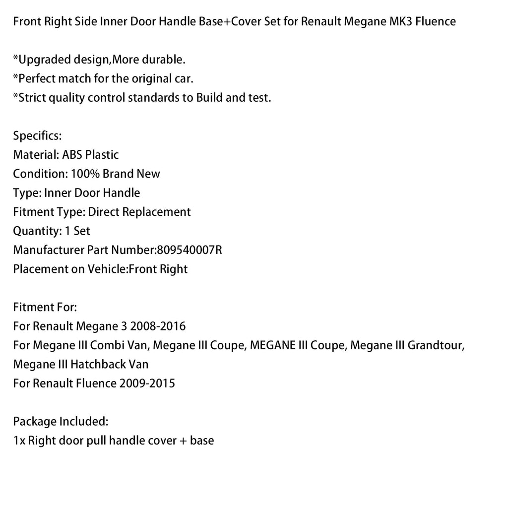 Conjunto de base y cubierta de manija de puerta interior delantera derecha compatible con Renault Megane MK3 Fluence