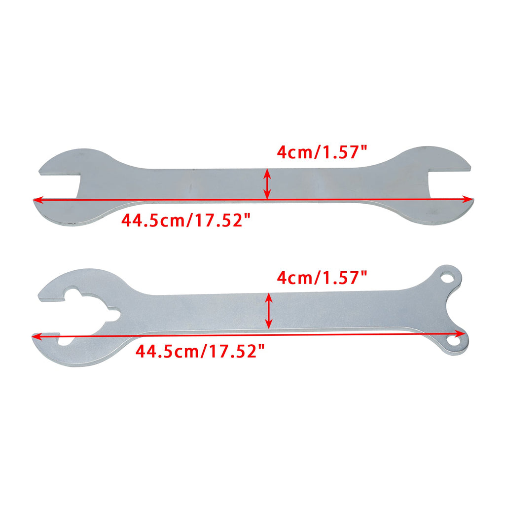 La mordaza de doble apertura encaja en las tuercas del cubo del ventilador viscoso en TD V6 Discovery 3 y Range Rover Sport V6 2.7L. La otra llave encaja en los 3 pernos de la polea del ventilador y luego. Usando ambas herramientas, puede desatornillar el ventilador viscoso.