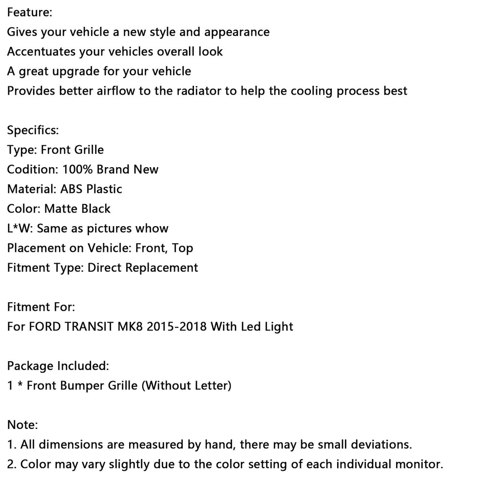 Rejilla delantera negra mate para Ford Transit MK8 2015-2018 Raptor con LED