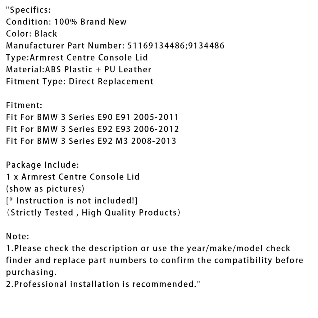 Cubierta de cuero negro para la tapa de la consola central del reposabrazos para BMW E90, E91, E92 y E93 51169134486