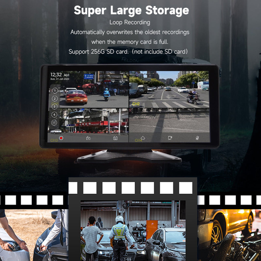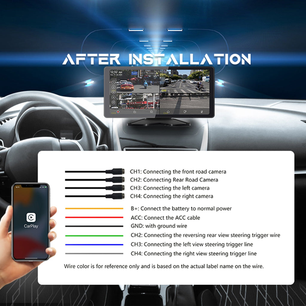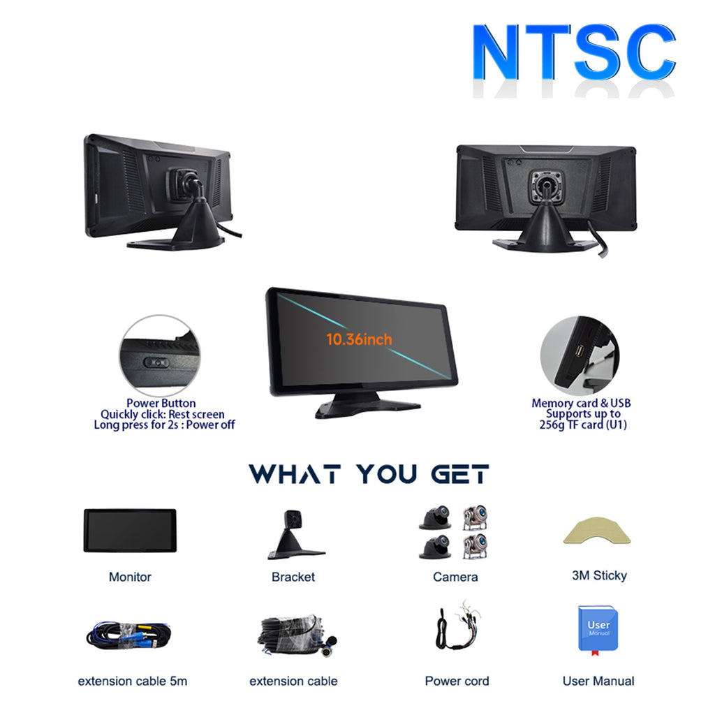 Pantalla táctil IPS Quantum de 10,36 pulgadas 1600x720 para camión autobús RV + 4 cámaras de visión trasera