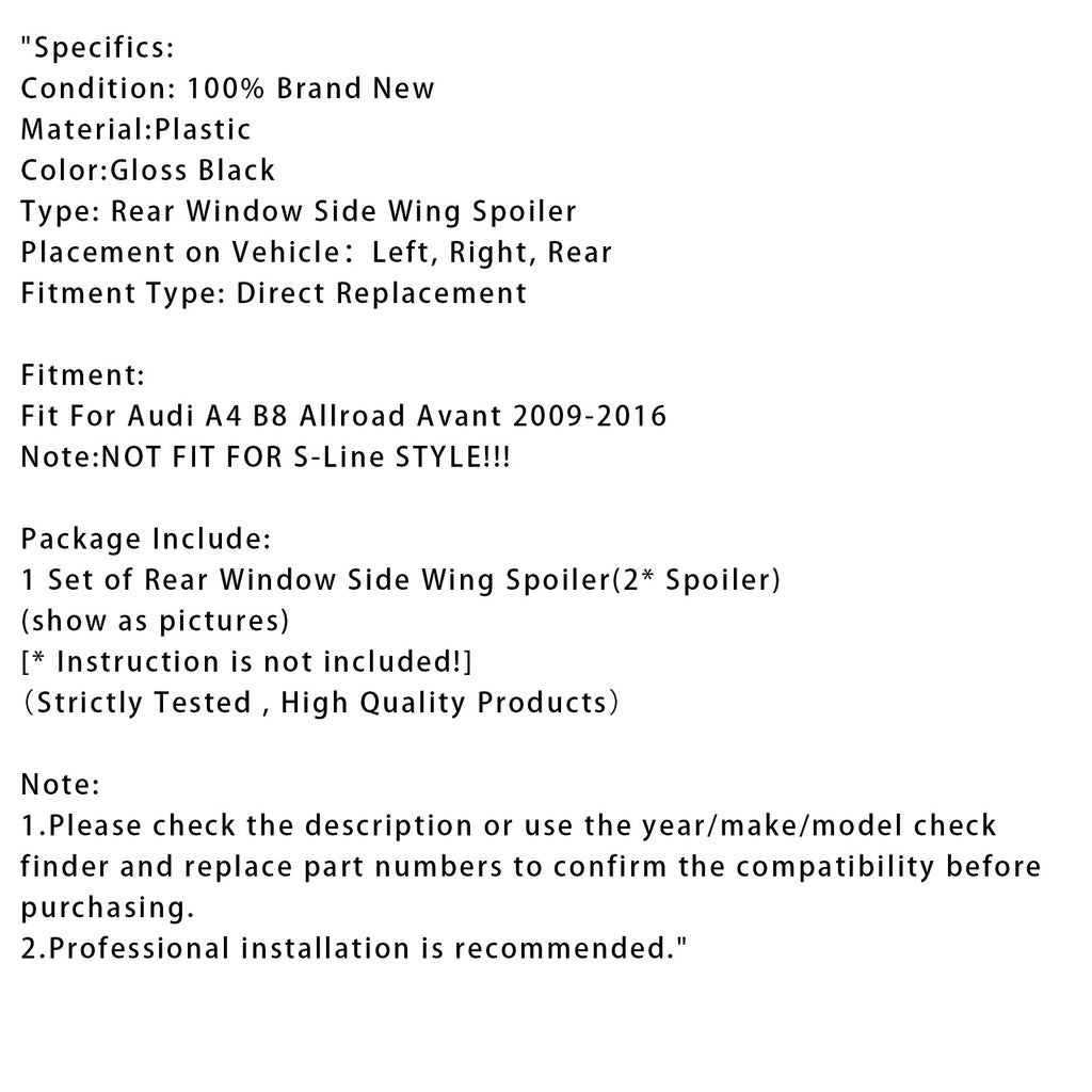 Par de alerones laterales traseros negros brillantes para Audi A4 B8 Avant 2009-2016