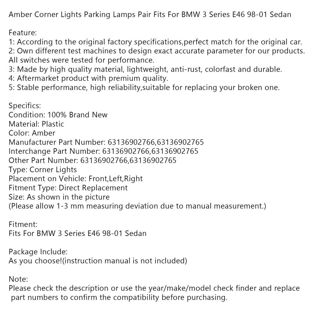Par de luces de esquina laterales ámbar para BMW Serie 3 E46 1998-2001 Sedán 63136902766