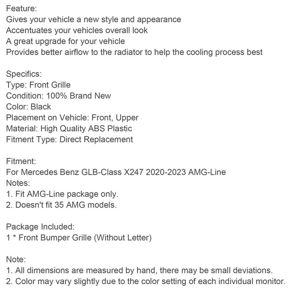 Rejilla de parachoques delantero negro brillante apta para Mercedes Benz GLB X247 2020-2023 AMG-Line