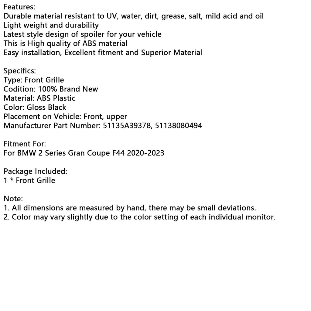 Rejilla frontal negra brillante apta para BMW Serie 2 F44 2020-2023 M Diamond Coupe