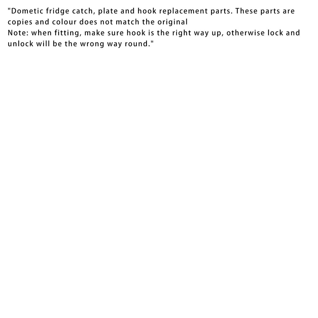 Repuestos para pestillos, placas y ganchos de refrigeradores Dometic. Estas piezas son réplicas y su color no coincide con el original.
