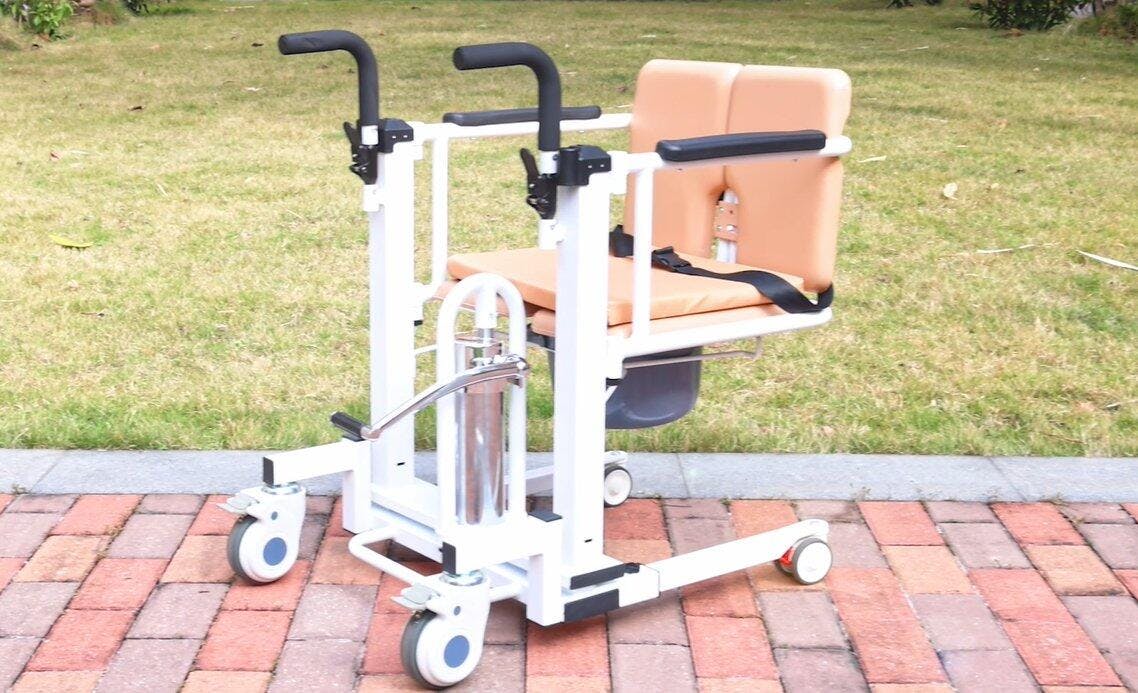 Esta grúa para silla de ruedas es un dispositivo revolucionario diseñado para transportar de forma cómoda y segura a pacientes con movilidad reducida a sus hogares o centros de atención. Versátil y duradera, es cómoda para el paciente y fácil de usar para los cuidadores. Su instalación sin herramientas, su diseño ligero y su portabilidad la convierten en la opción ideal para el cuidado en el hogar. La grúa de traslado ofrece mayor comodidad al desplazarse por su hogar o centro. Con esta grúa, podrá pasar más tiempo en su sala de estar con su familia sin preocuparse por moverse. Olvídese de las comidas en la cama y vuelva a sus viejas costumbres comiendo en el comedor con sus seres queridos. La grúa está equipada con doble bloqueo delantero y trasero para garantizar la seguridad y prevenir accidentes durante el transporte. La altura del dispositivo es ajustable para adaptarse a las diferencias de altura durante el transporte. El asiento se pliega 90° para una transferencia segura desde la posición sentada a la silla. También cuenta con asas ergonómicas que proporcionan un agarre cómodo y seguro para usted o su cuidador. También cuenta con un orificio para inodoro y un inodoro portátil. Diseñado para permitirle moverse libremente por su hogar o cualquier otro lugar, facilita la vida de todos. Recupere su libertad y muévase sin esfuerzo de una habitación a otra con este innovador dispositivo.