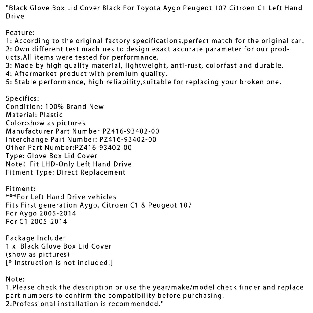 Cubierta de guantera negra para Toyota Aygo Peugeot 107 Citroen C1 Volante a la izquierda