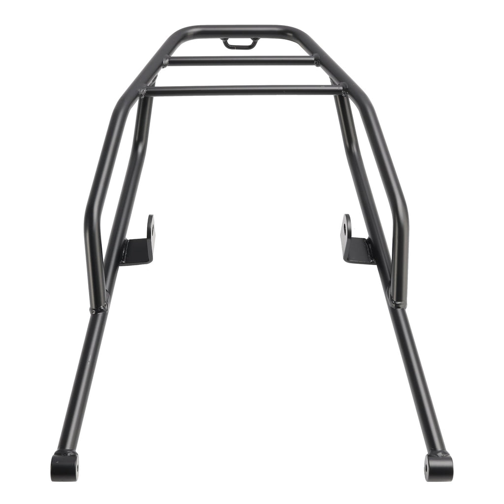 Nuestro sistema de portaequipajes transversales de alta resistencia actúa como un bastidor auxiliar adicional que refuerza la parte trasera de la bicicleta y actúa como una barra de protección trasera.