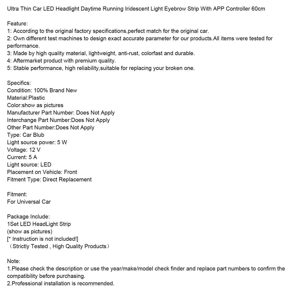 Faro LED ultrafino para coche, luz diurna iridiscente, tira de cejas con controlador de aplicación, 60 cm