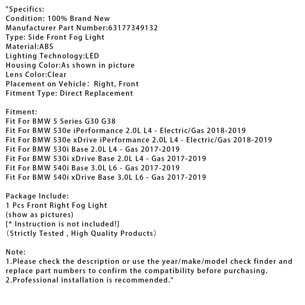 1 LED oikea etusumuvalo BMW 5-sarjaan G30 G38 17-19 63177349132