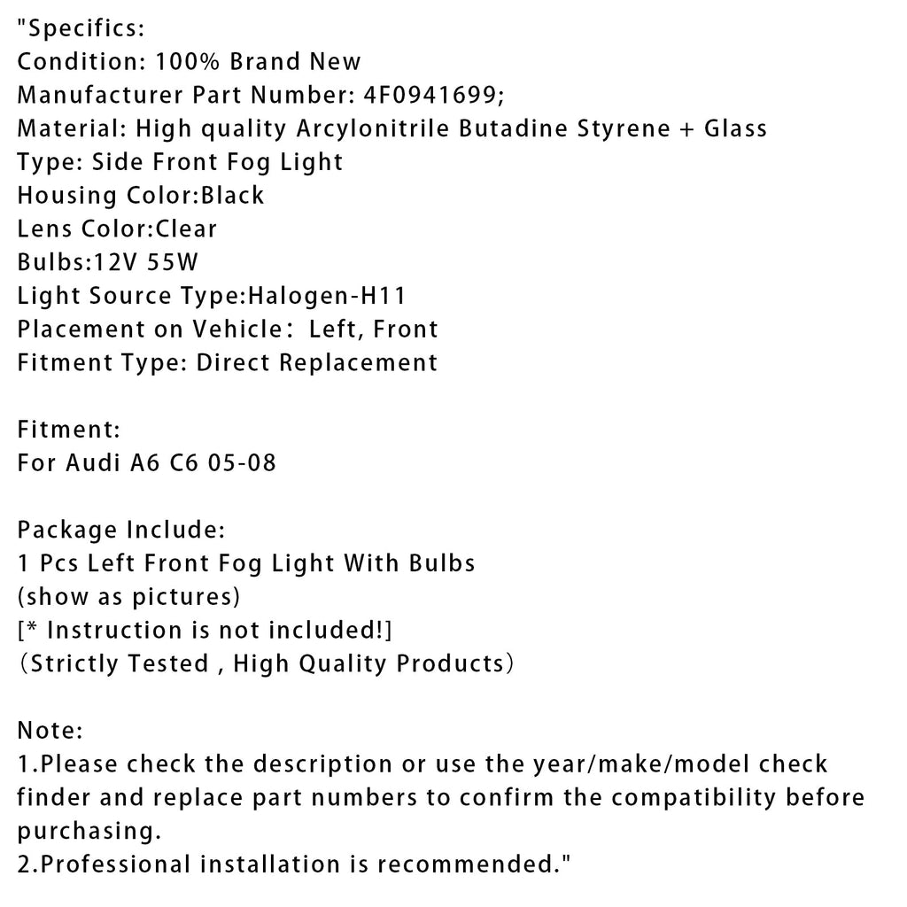 1 vasen etusumuvalo Audi A6 C6:lle 2005 2006 2007 2008