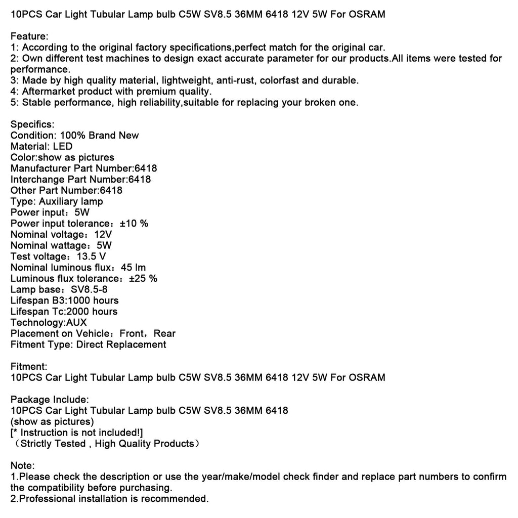 10 kpl C5W SV8.5 36mm 6418 auton valoputkipolttimoita