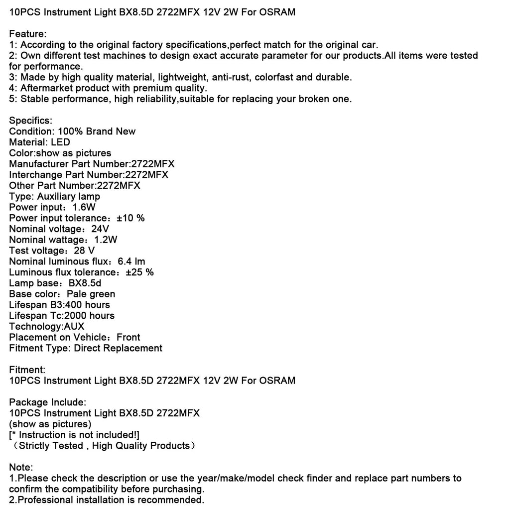 10 x BX8.5D 2722MFX 12V 2W -mittarilamppua OSRAMille