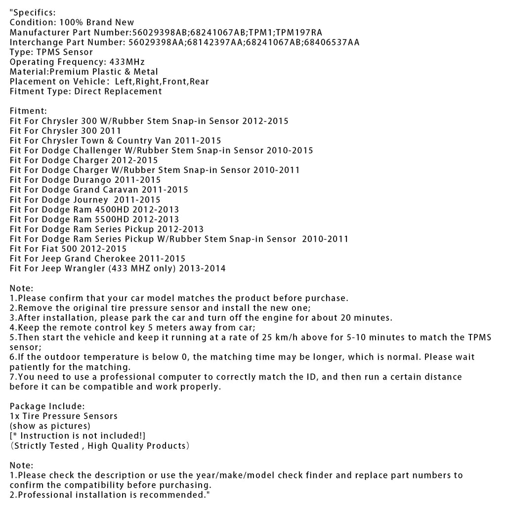 1X TPMS-rengaspaineanturi Dodge Jeep Chrysler RAMille 56029398AB