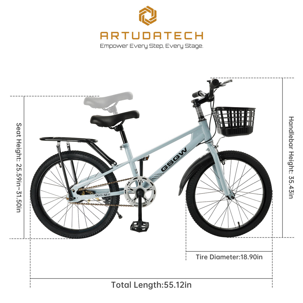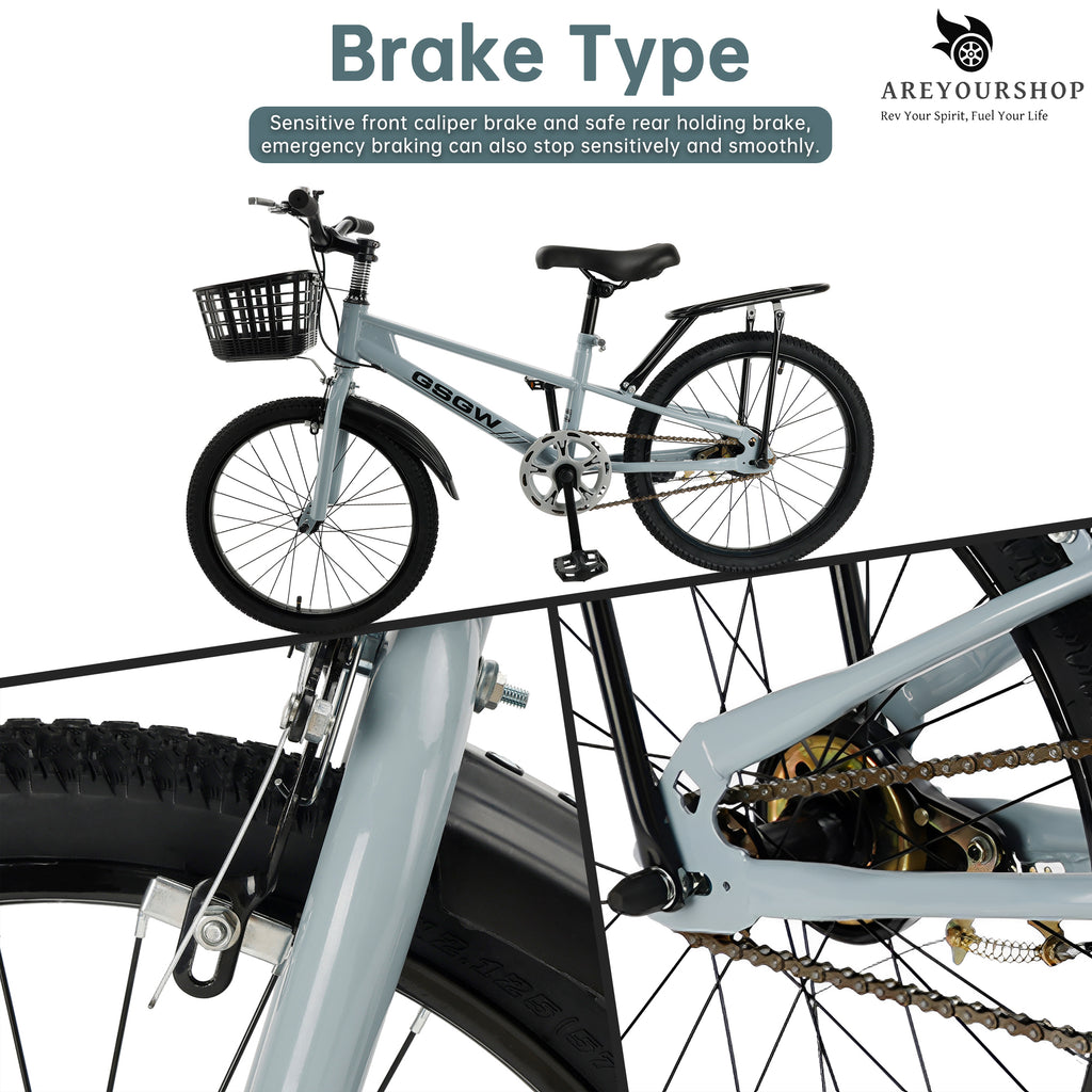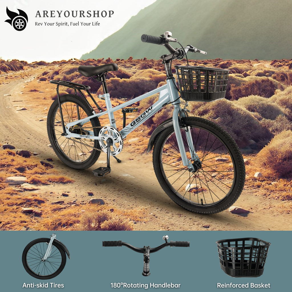 20 tuuman lastenpyörä korilla tytöille/pojille (8-12 vuotta)