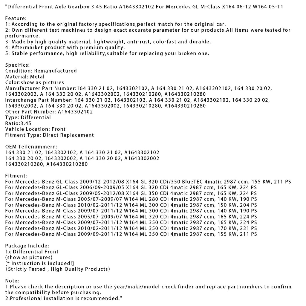 2005/07-2009/07 Mercedes-Benz M-sarja W164 ML 280 CDi Tasauspyörästö Etuakseli 3.45 Välitys 164330210280 A1643302102