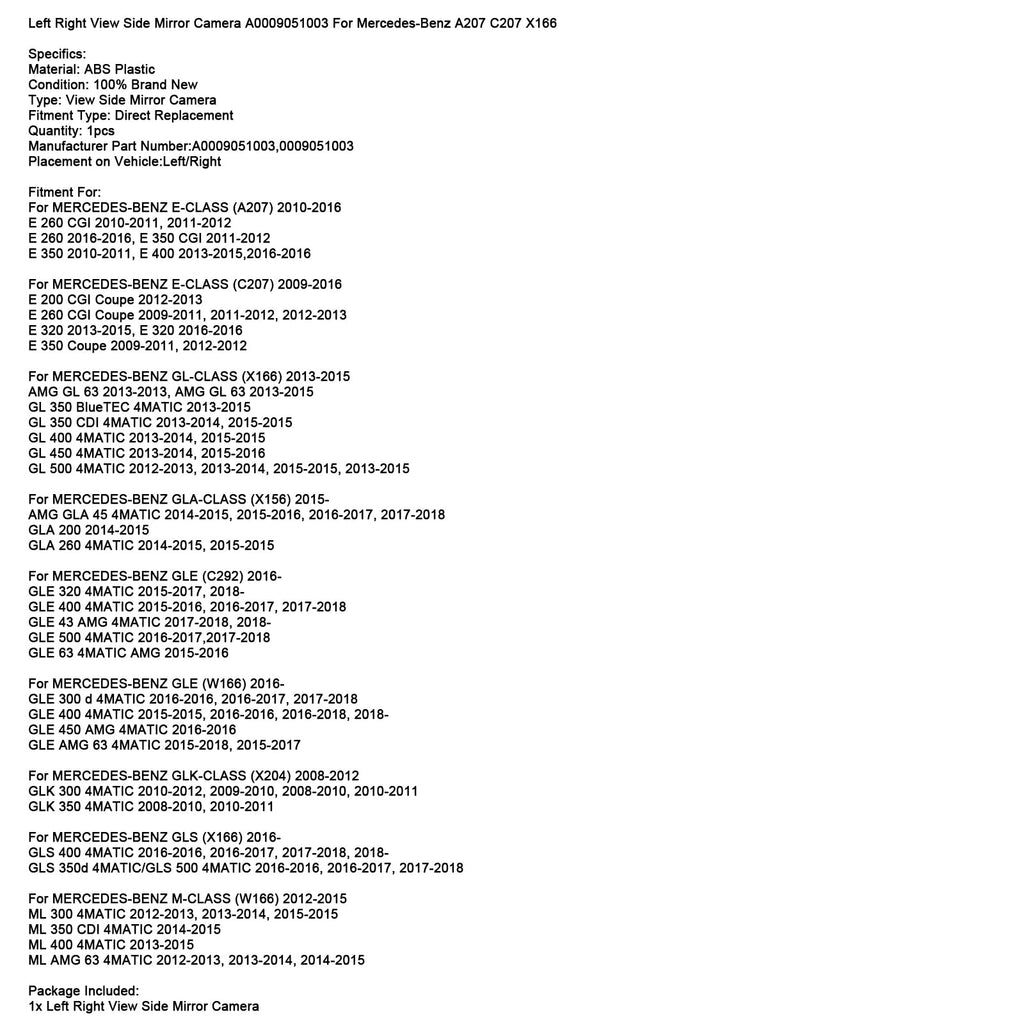 Vasen/oikea sivupeilikamera A0009051003 Mercedes-Benz A207 C207 X166:lle